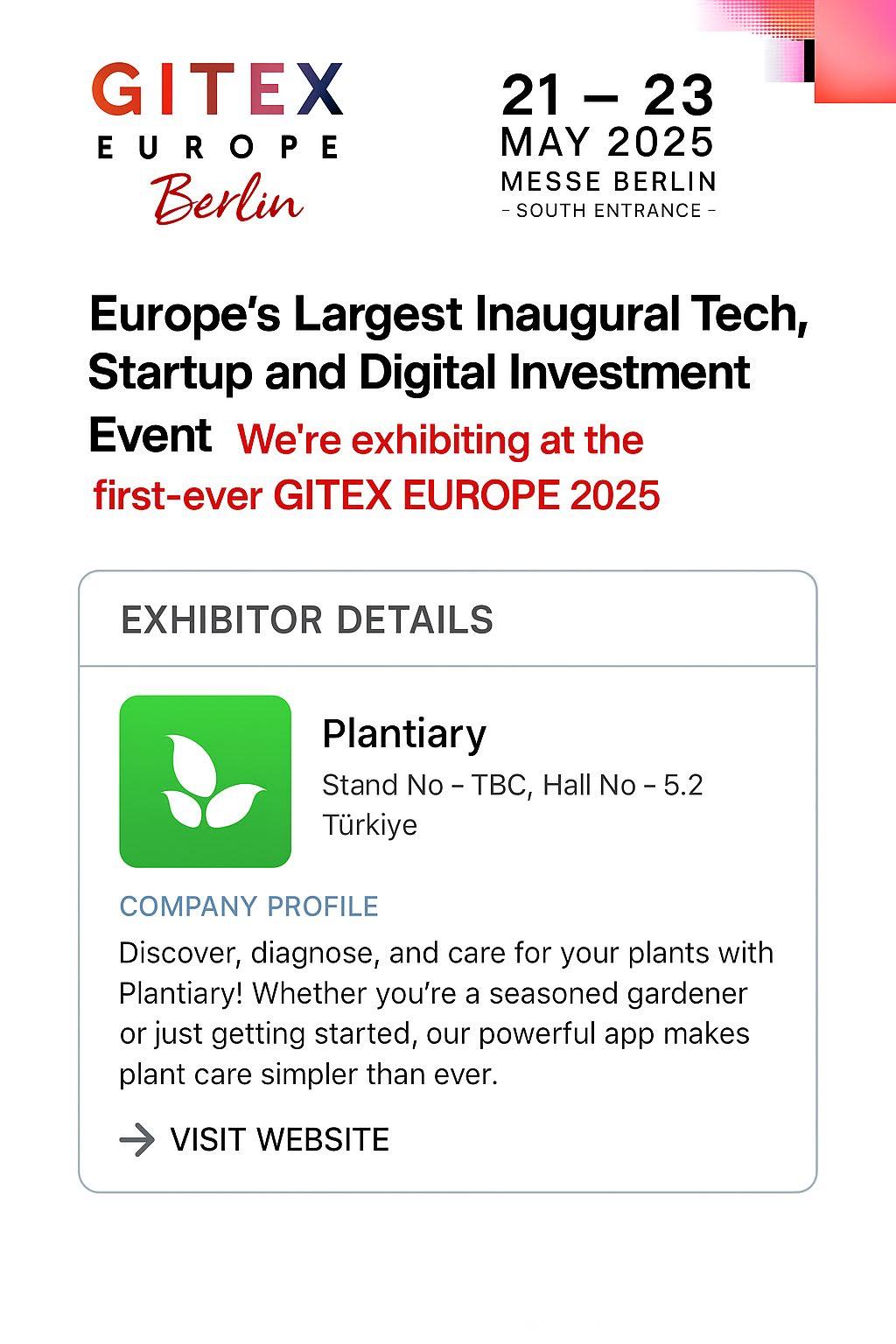 Giresun Teknopark firmalarımızdan Blacke'nin "Plantiary" uygulaması, 21-23 Mayıs tarihlerinde Avrupa'nın en büyük teknoloji ve startup fuarlarından biri olan GITEX EUROPE 2025'te sergilendi.